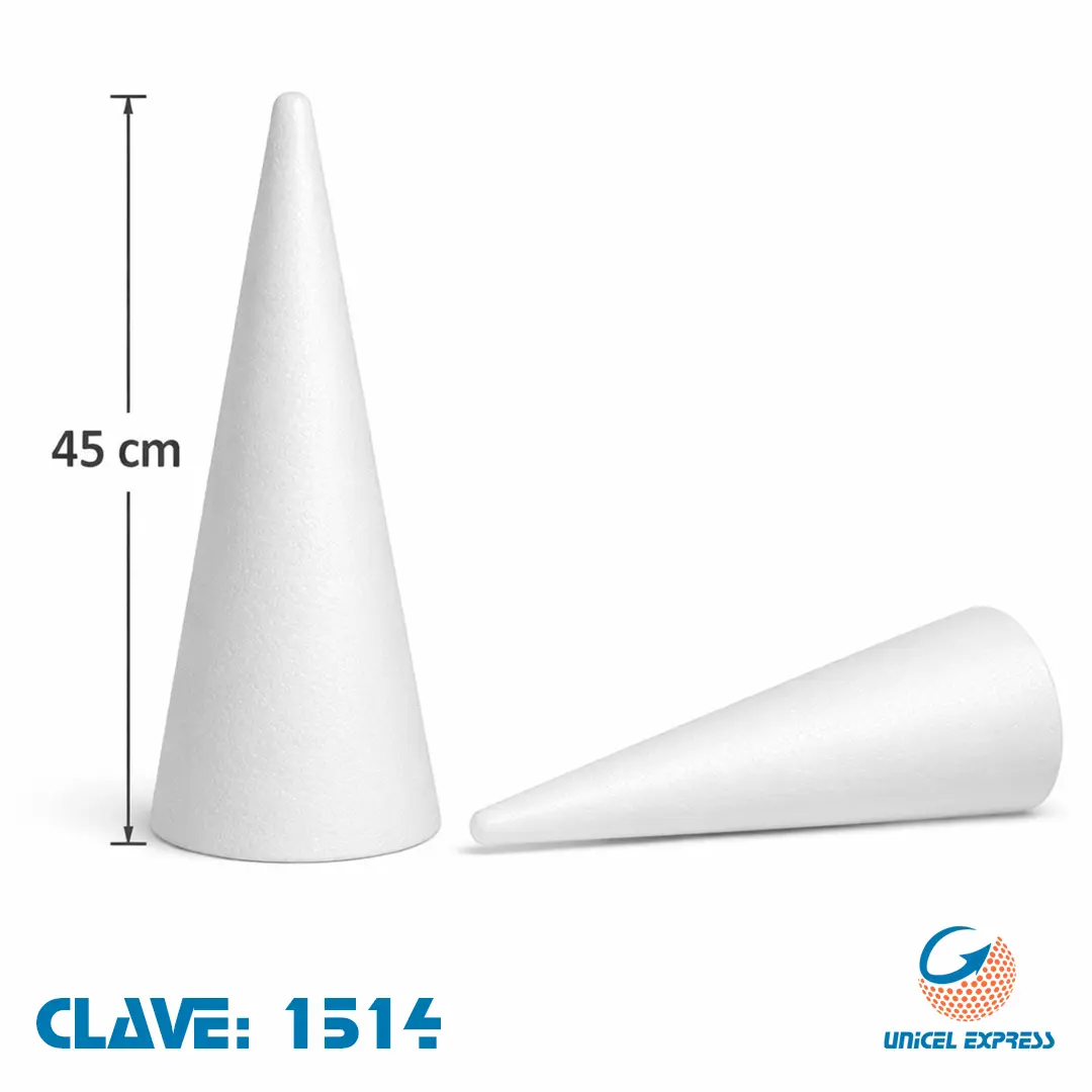 Gracias a su tamaño de 45 cm, este cono de unicel es perfecto para árboles decorativos monumentales, escenografías, vitrinas comerciales, exhibiciones temáticas, decoración de eventos de gran formato, proyectos escolares y trabajos artísticos. Su superficie permite un excelente pintado y recubrimiento con materiales como pintura acrílica, papel, vinil, foamy, tela o recubrimientos especiales, facilitando una personalización total según cada concepto creativo.