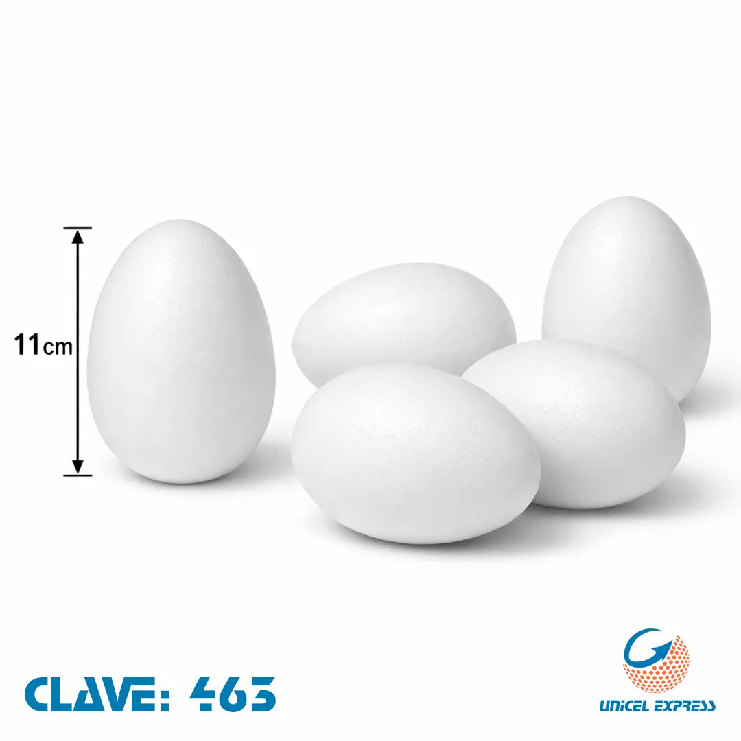 Los Huevos de Unicel 11 cm de Unicel Express, presentados en empaque de 100 piezas, son ideales para proyectos decorativos, manualidades y aplicaciones creativas que requieren piezas de gran tamaño, volumen y máxima presencia visual, manteniendo la ligereza y facilidad de trabajo del unicel. Fabricados en poliestireno expandido (EPS) de alta calidad, ofrecen una forma uniforme, superficie lisa y excelente resistencia, garantizando acabados profesionales y consistentes.