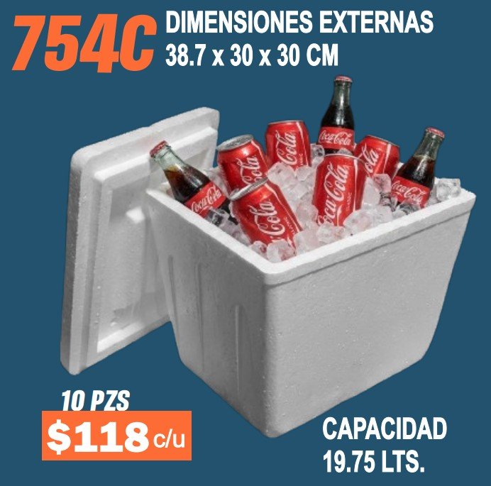 Fabricada en unicel (EPS) de alta densidad, ofrece excelente aislamiento térmico, ligereza y resistencia estructural, facilitando su transporte y manejo incluso en usos intensivos. Su presentación en paquete de 10 piezas permite optimizar inventarios y costos para negocios con demanda constante.