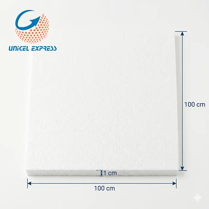 Lleva la eficiencia y la protección a tus proyectos con este paquete de 50 placas de unicel de gran formato. Con una superficie de un metro cuadrado por pieza y un espesor delgado de 1 cm, estas láminas son la solución ideal para trabajos que requieren ligereza, aislamiento térmico y facilidad de corte.