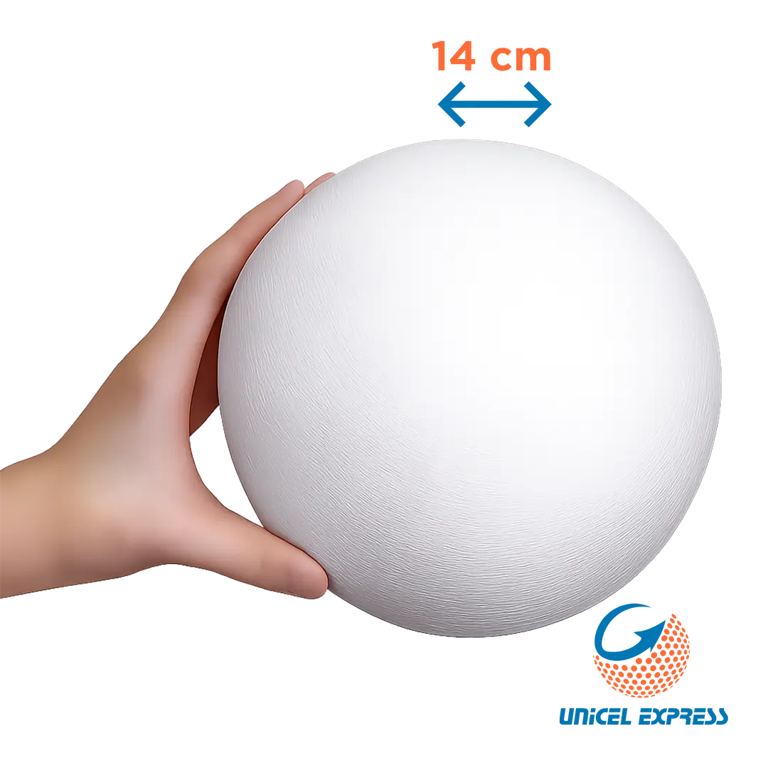 En Unicel Express, contamos con más de 10 años de experiencia en la fabricación y distribución de productos de unicel EPS, garantizando calidad uniforme, entregas rápidas y disponibilidad constante. Si buscas esferas de unicel de 14 cm con excelente relación costo–beneficio, esta presentación es ideal para crear decoraciones impactantes y proyectos de gran presencia visual.